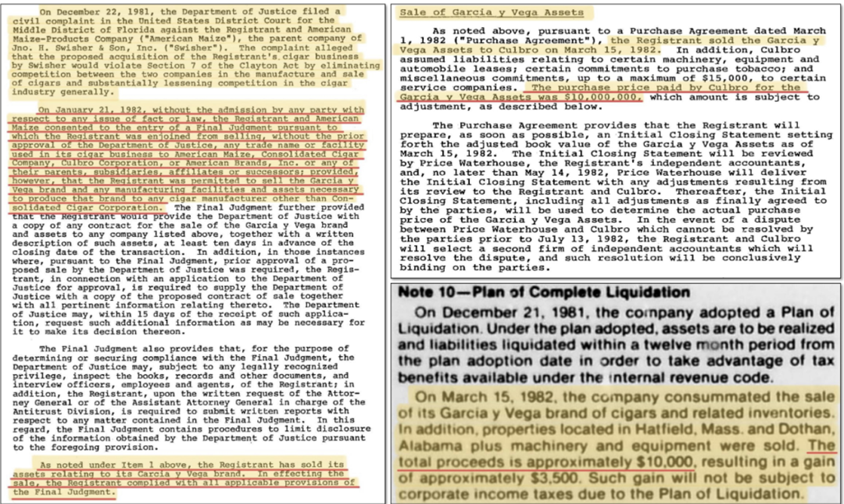 第二天,联邦政府就对这笔交易提出反对,称这将大大减少雪茄制造和销售领域的竞争,明显违反了1914年的《克莱顿反托拉斯法》。判决过后,公司在不违反判决的情况下,1981年3月1日,寻找到了新的买家——Culbro。